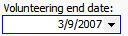You can enter a date in a date field by either typing in the date or by selecting the date from a drop-down calendar. For example, 030907 will be converted to 3/9/2007, as shown below. ![]()